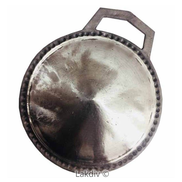 Roti prata cooking on hot flat iron frying pan griddle grill under mild heat of gas grill.